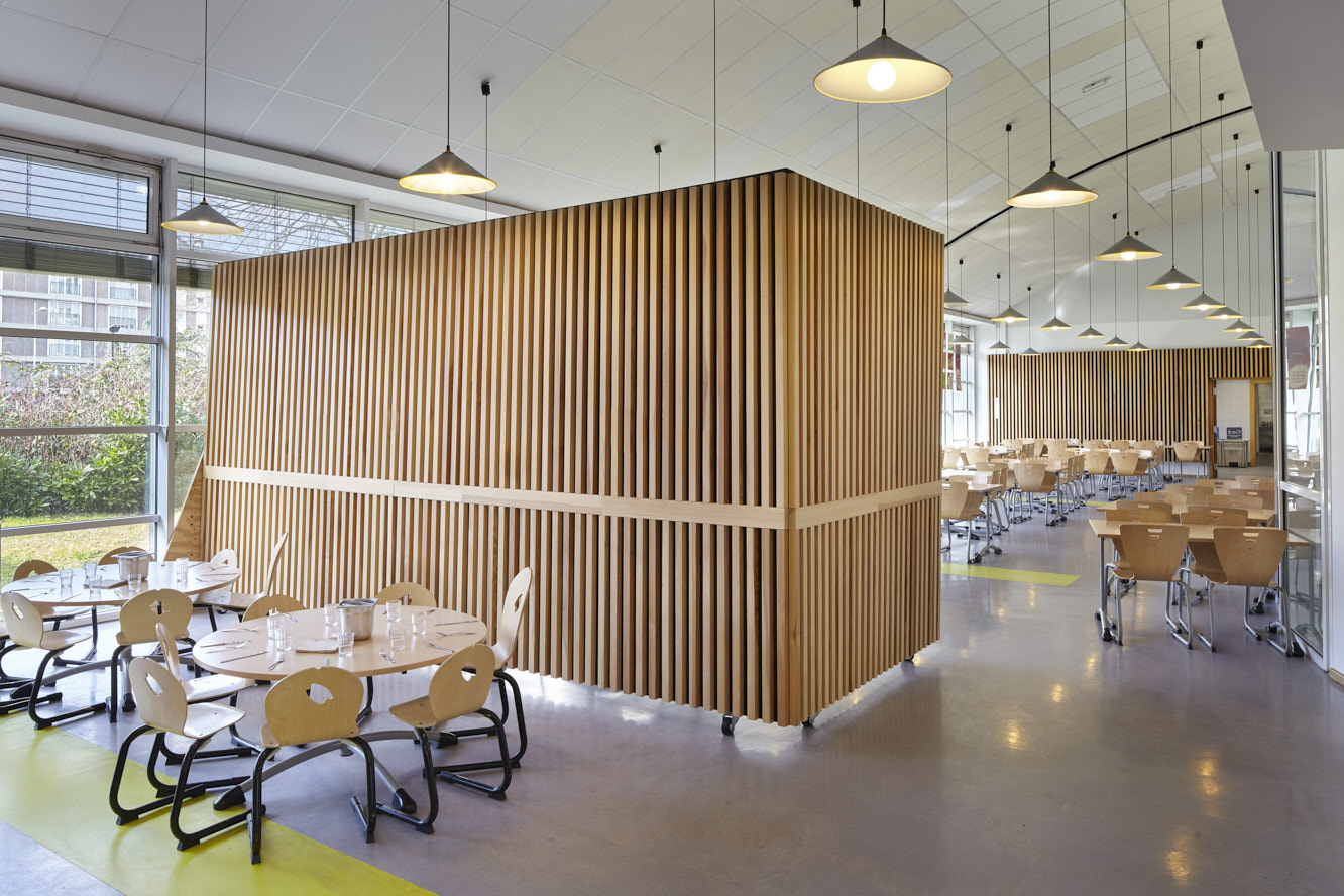 De fait l’objet de la présente opération est de réaliser les interventions suivantes des travaux d’adaptation du restaurant (office, laverie, salle de restauration maternelle) au nouveau processus de livraison des repas maternelle en vrac en tout bacs inox et de mettre en place de la collecte sélective des déchets dans l’ensemble du restaurant.
