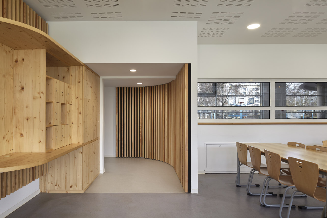 Ce nouveau mode de fonctionnement impacte la salle de restauration maternelle ; sa surface se voit réduite. Il est demandé d’étudier la possibilité de compenser cette perte par une extension de la salle sur l’ancien couloir attenant à la salle maternelle et menant vers l’ancien bâtiment B de l’école transformé depuis en maison des services.